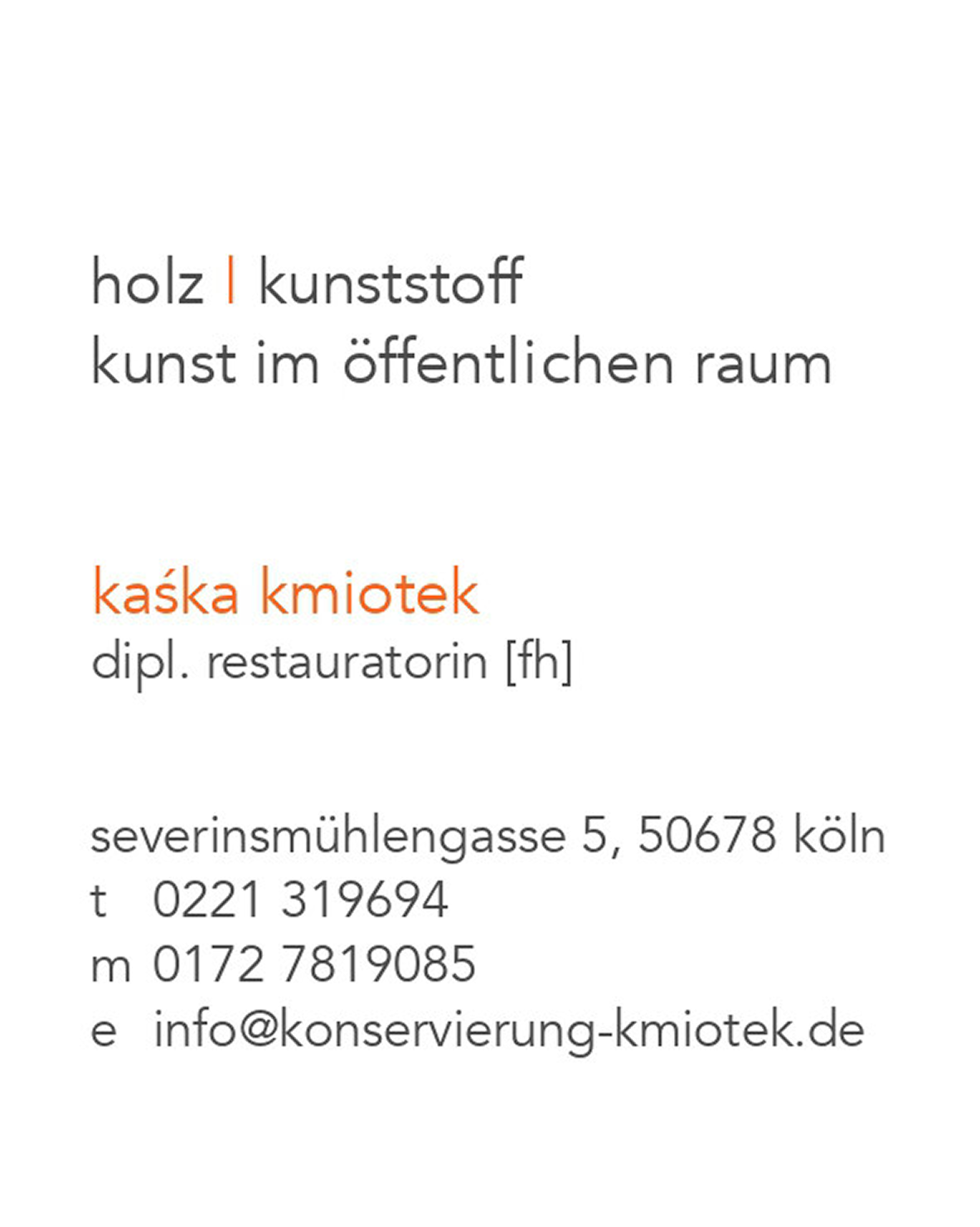 Als Diplom-Restauratorin mit langjähriger Erfahrung in der Konservierung und Restaurierung biete ich Ihnen professionelle Betreuung für Kunstwerke und Objekte aus den Bereichen Holz, Kunststoff sowie Kunst im öffentlichen Raum. Meine Arbeit basiert auf fundiertem Wissen und präziser Handwerkskunst, um Kulturgüter fachgerecht zu erhalten und ihre historische Integrität zu wahren.
